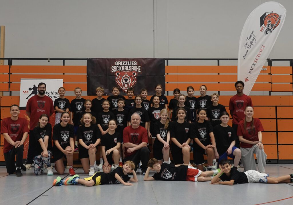 Fünf Tage Basketballcamp in den Herbstferien – das wollten sich viele basketballbegeisterte Kids nicht entgehen lassen. Und so startete das GRIZZLIES Herbstcamp 2025 powered by PACKSERVICE mit rund 30 Kindern und Jugendlichen der Jahrgänge 2011-2016 am Montag der Herbstferien. Fast alle brachten Basketballkenntnisse mit, viele der Kinder spielen in der PACKSERVICE Basketballakademie des SSC Karlsruhe oder in einem anderen Verein in der Umgebung.