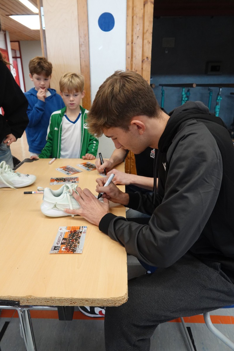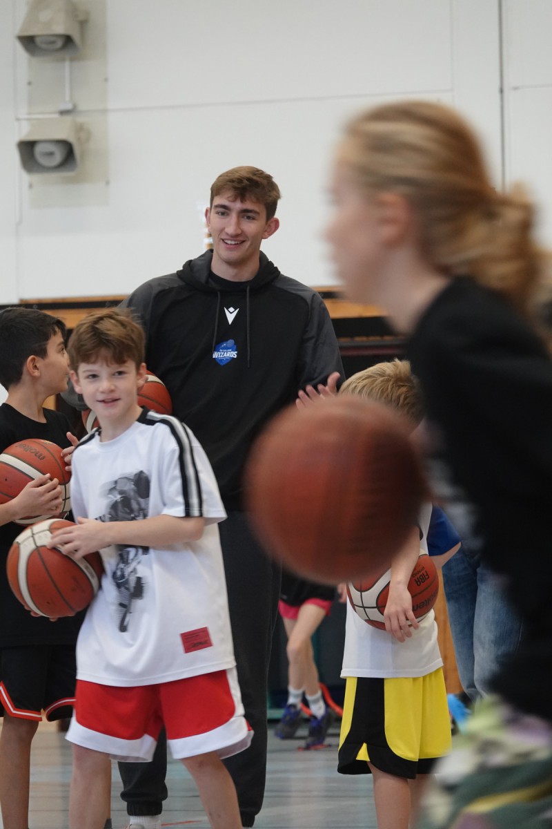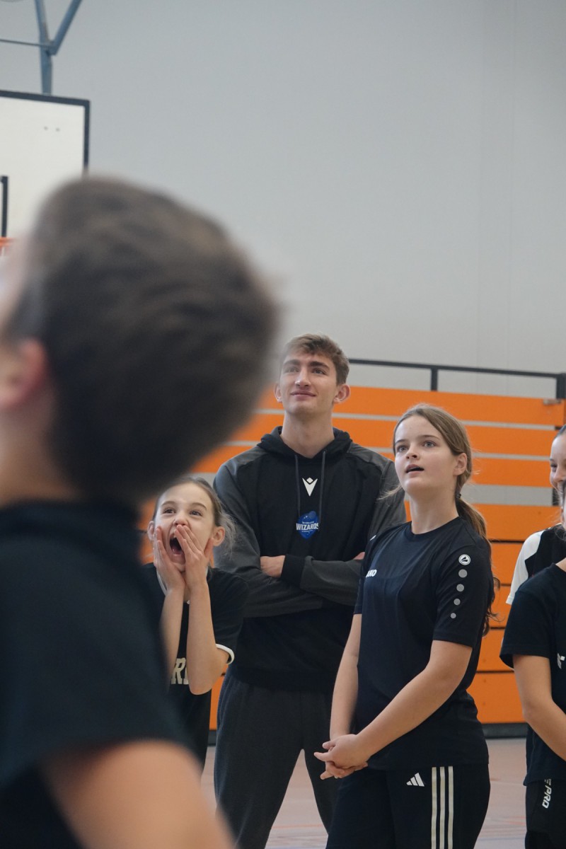 Am Mittwoch kam als Special-Guest der US-Profi Sam Stockton, der Point-Guard der io College Wizards unseres Kooperationspartners KIT SC, zum Camp. Der Sohn von NBA-Legende John Stockton ließ sich gerne von den jungen Basketballern interviewen, spielte beim Bumb-Spiel mit und gab zum Abschluss Autogramme.