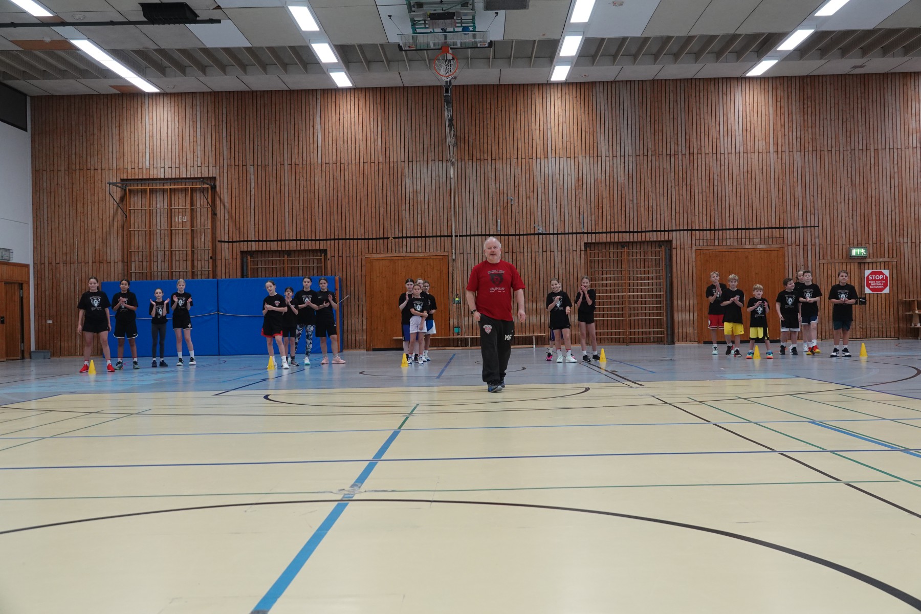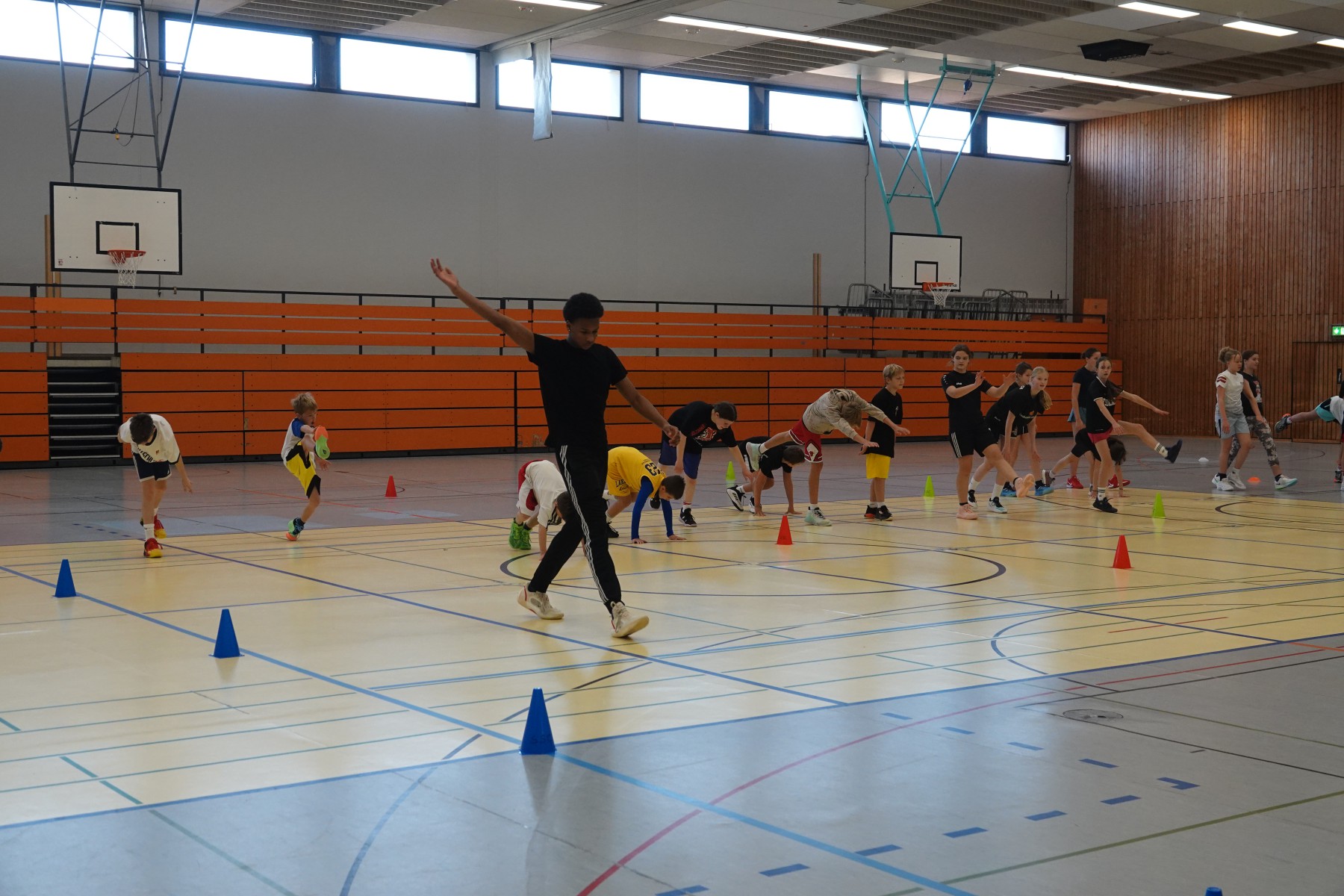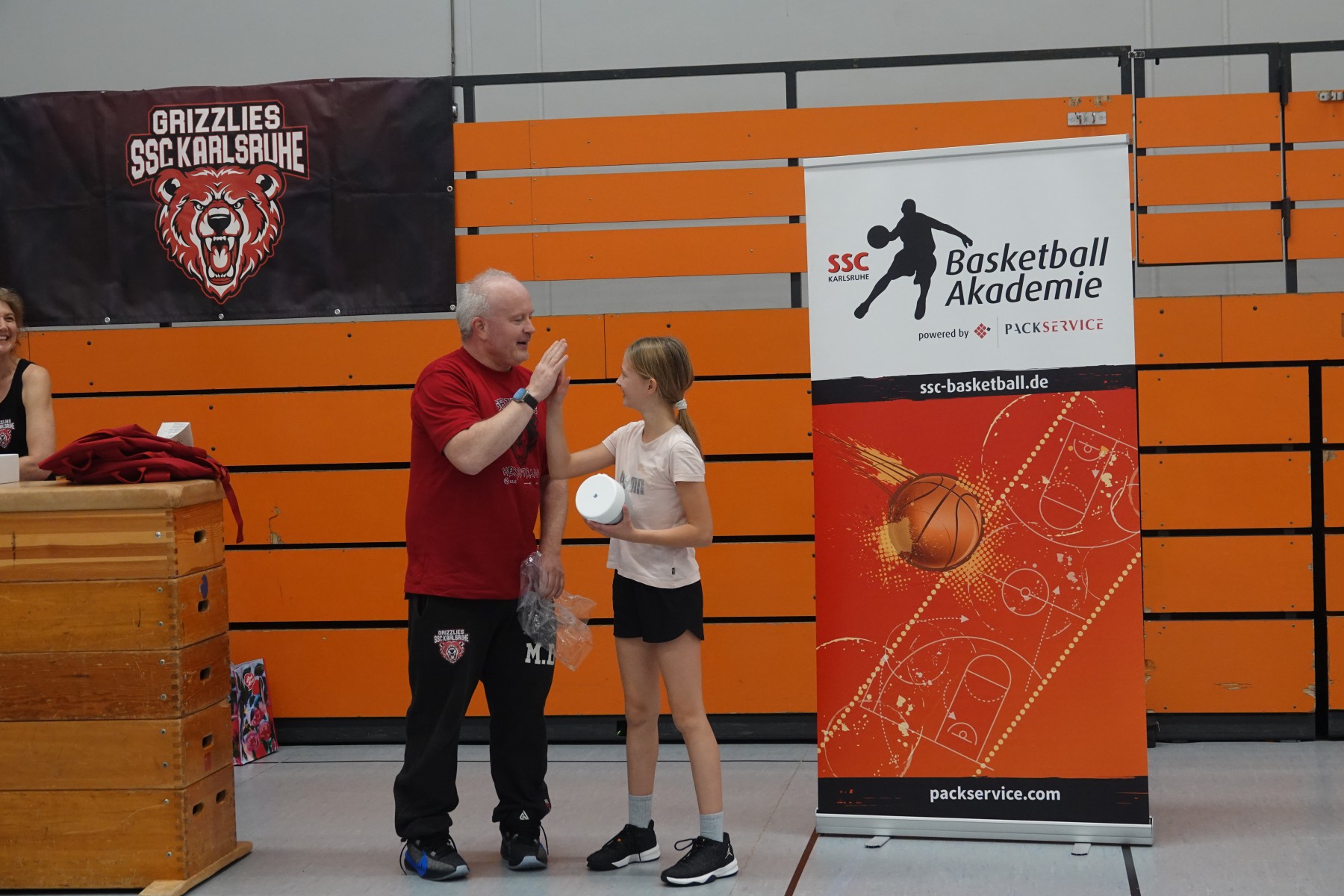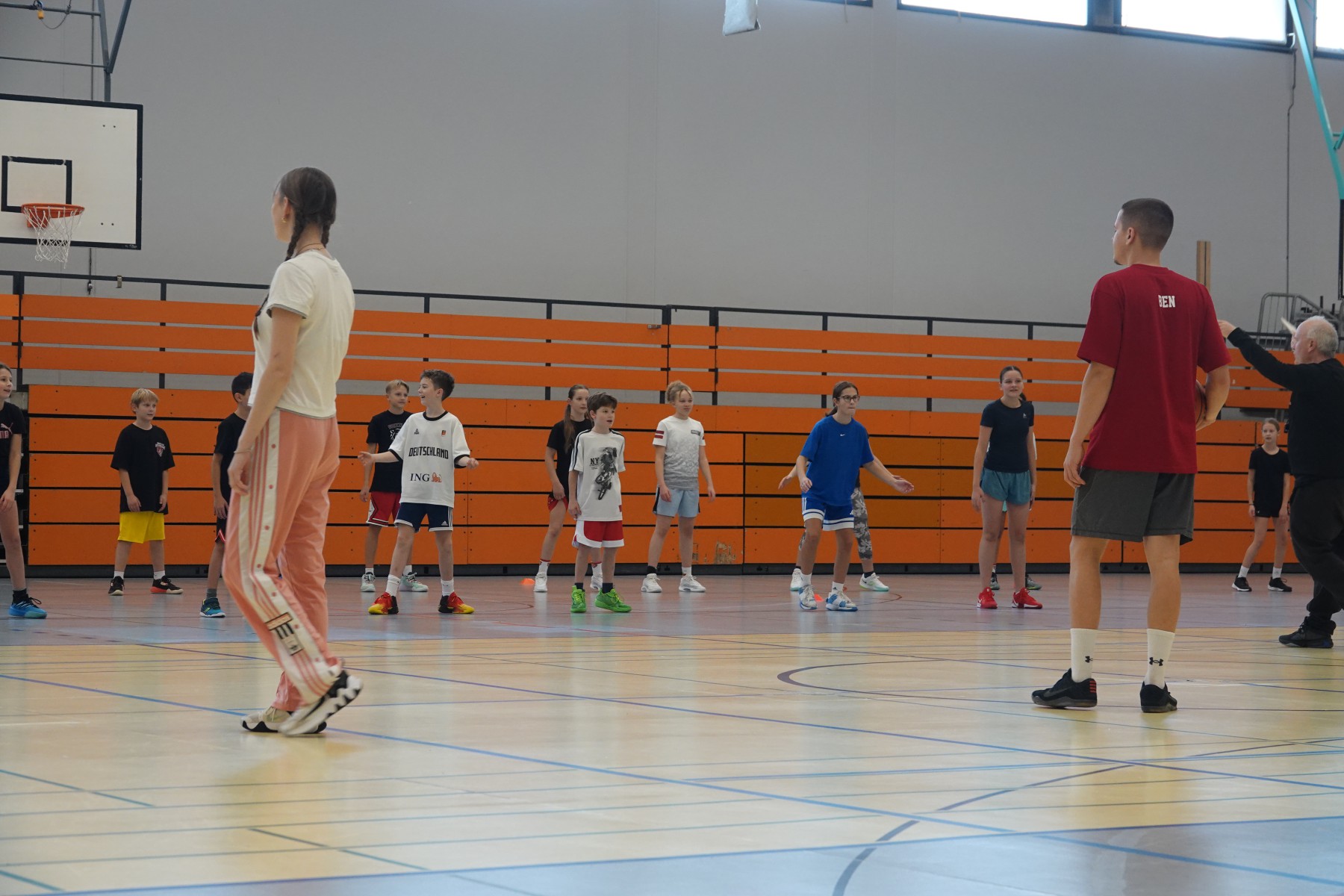 Bei der Verabschiedung lobte Marcus alle Kinder für ihren Einsatz und jede(r) bekam einen kleinen Preis. Ein letztes Mal verabschiedeten sich alle lautstark mit einem Huddle. Dann war auch diese erlebnisreiche Basketball-Woche schon wieder zu Ende.