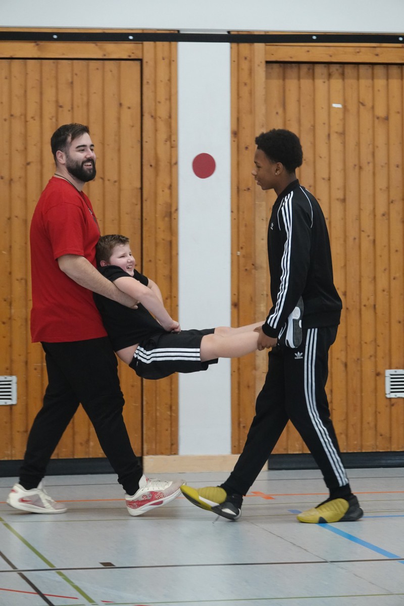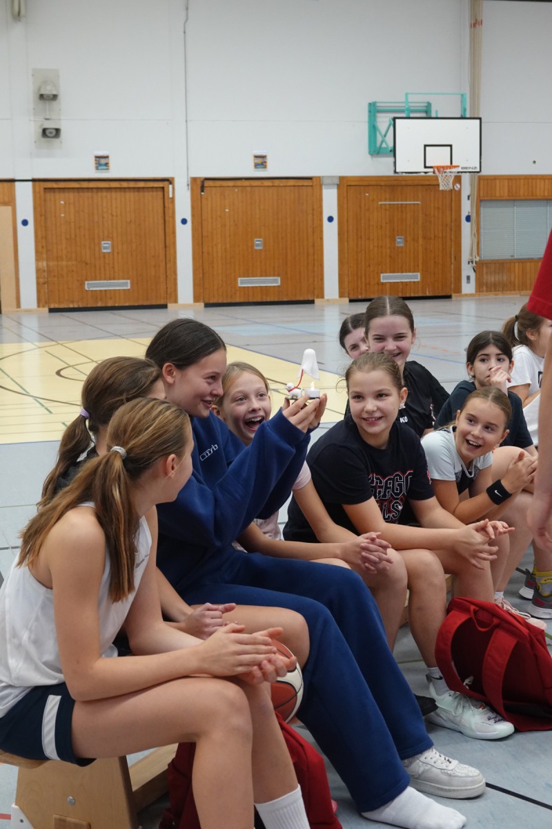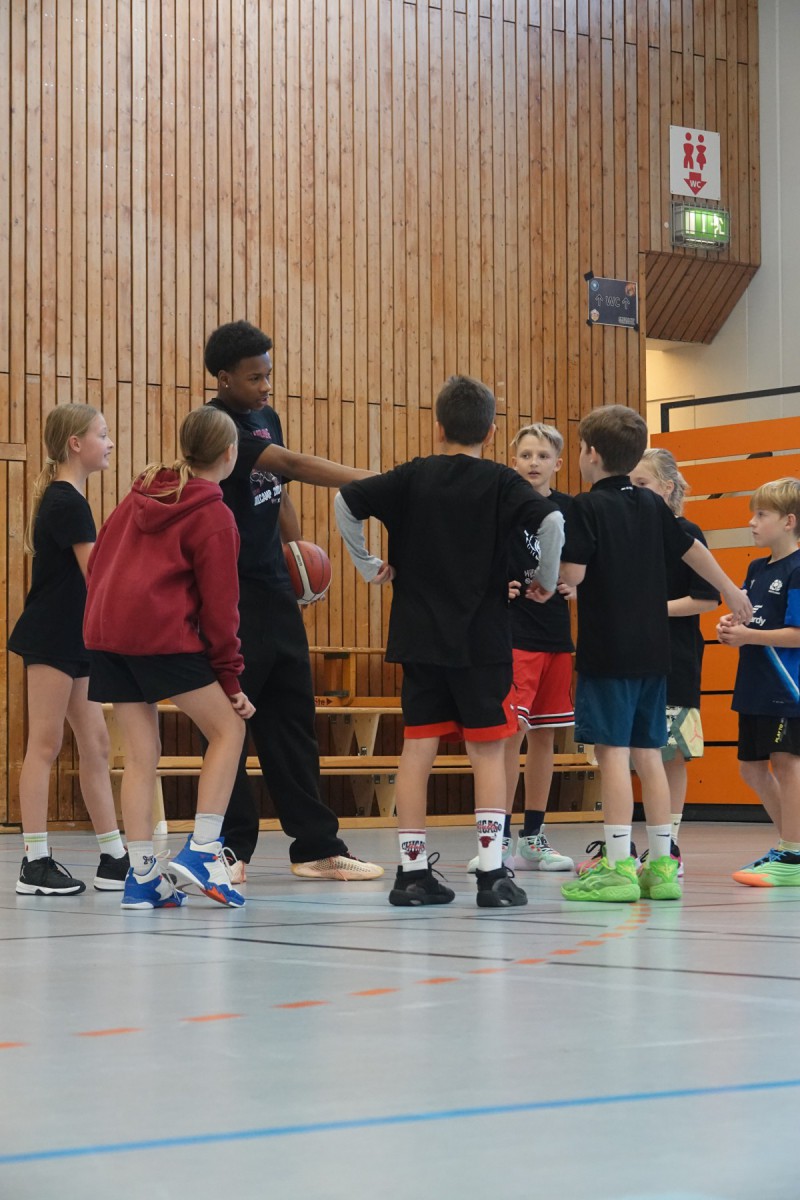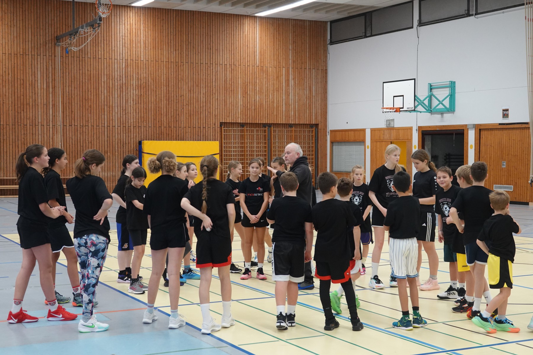 Bei der Verabschiedung lobte Marcus alle Kinder für ihren Einsatz und jede(r) bekam einen kleinen Preis. Ein letztes Mal verabschiedeten sich alle lautstark mit einem Huddle. Dann war auch diese erlebnisreiche Basketball-Woche schon wieder zu Ende.