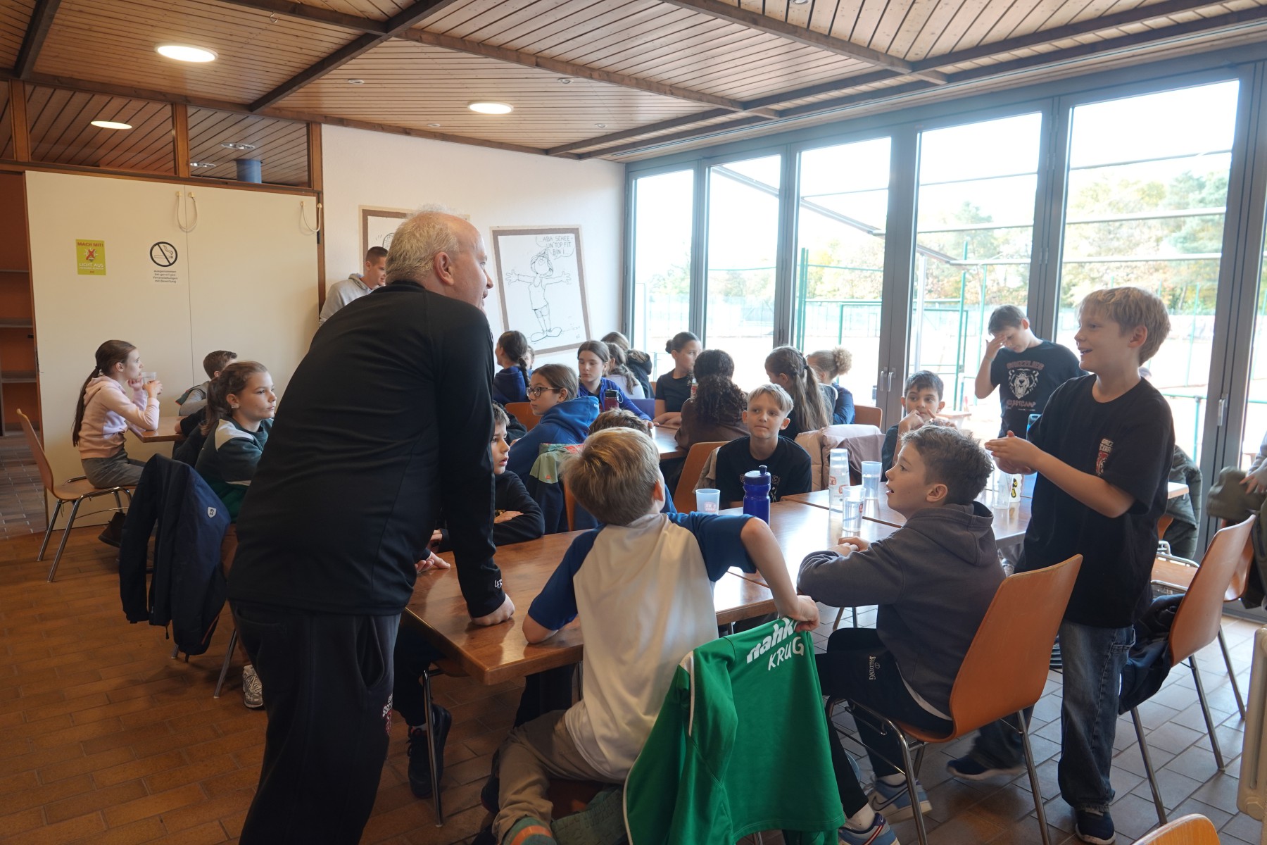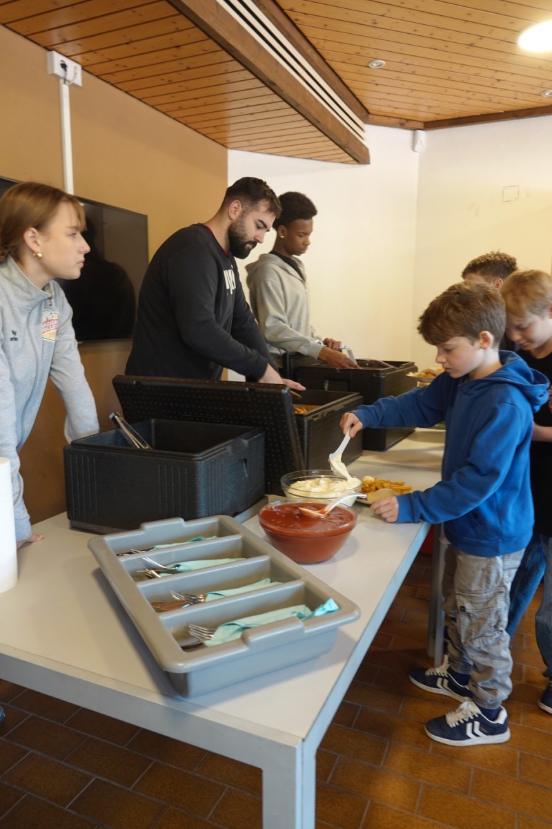 Neue Energie gab es bei den Obstpausen sowie mittags beim warmen Mittagessen. Mit leckerer Haus-Patata, Schnitzel, Hamburgern und Co. von der Denkfabrik konnten sich die Kinder und ihre Trainer jeden Mittag stärken. Der Fußweg vom SSC zurück zur Halle wurde ihnen mit Schoko-Riegeln versüßt.