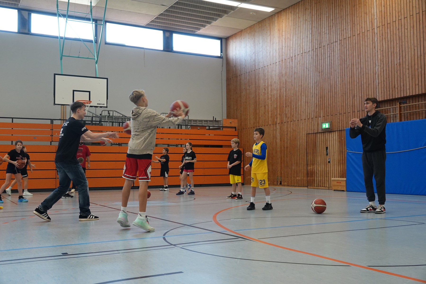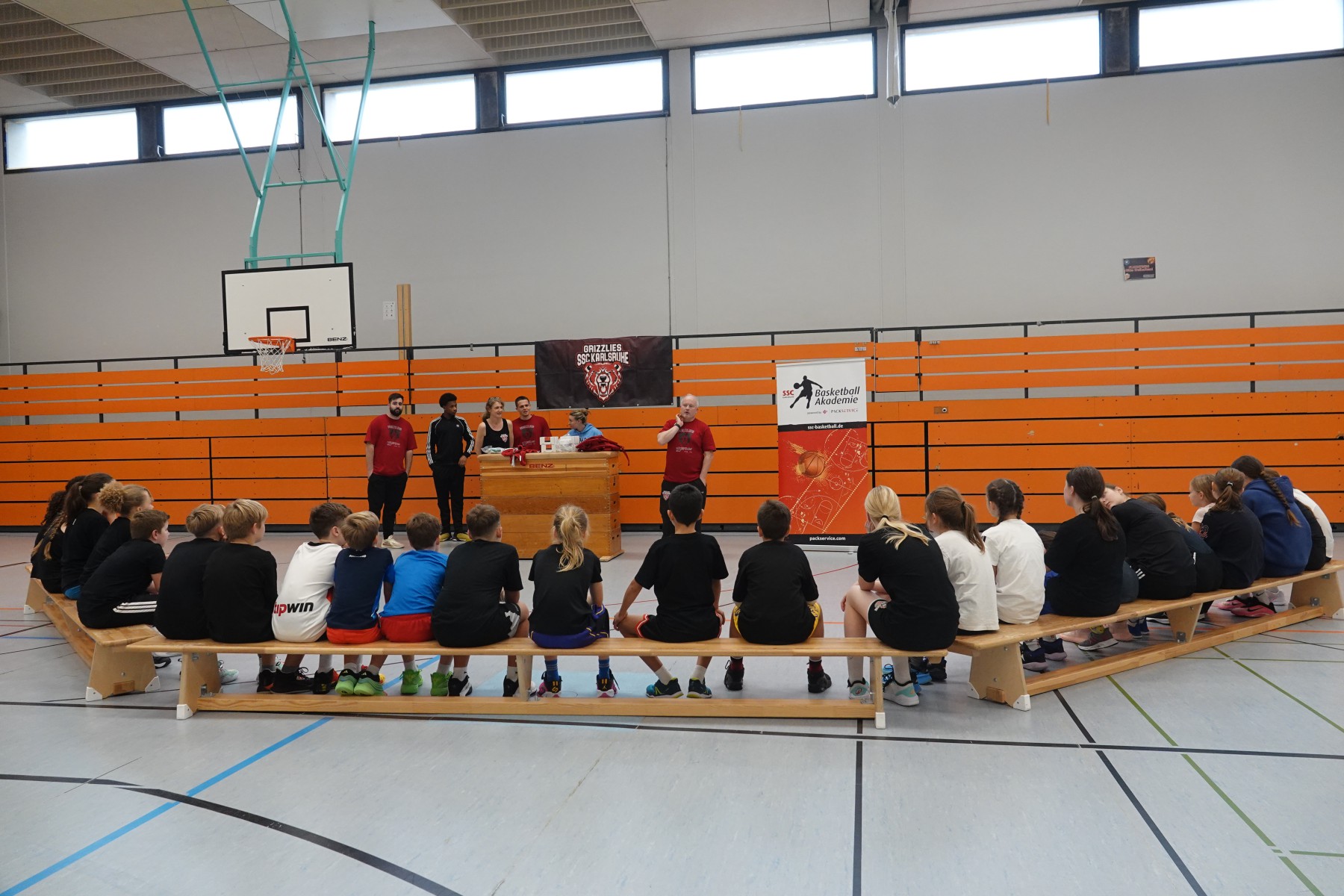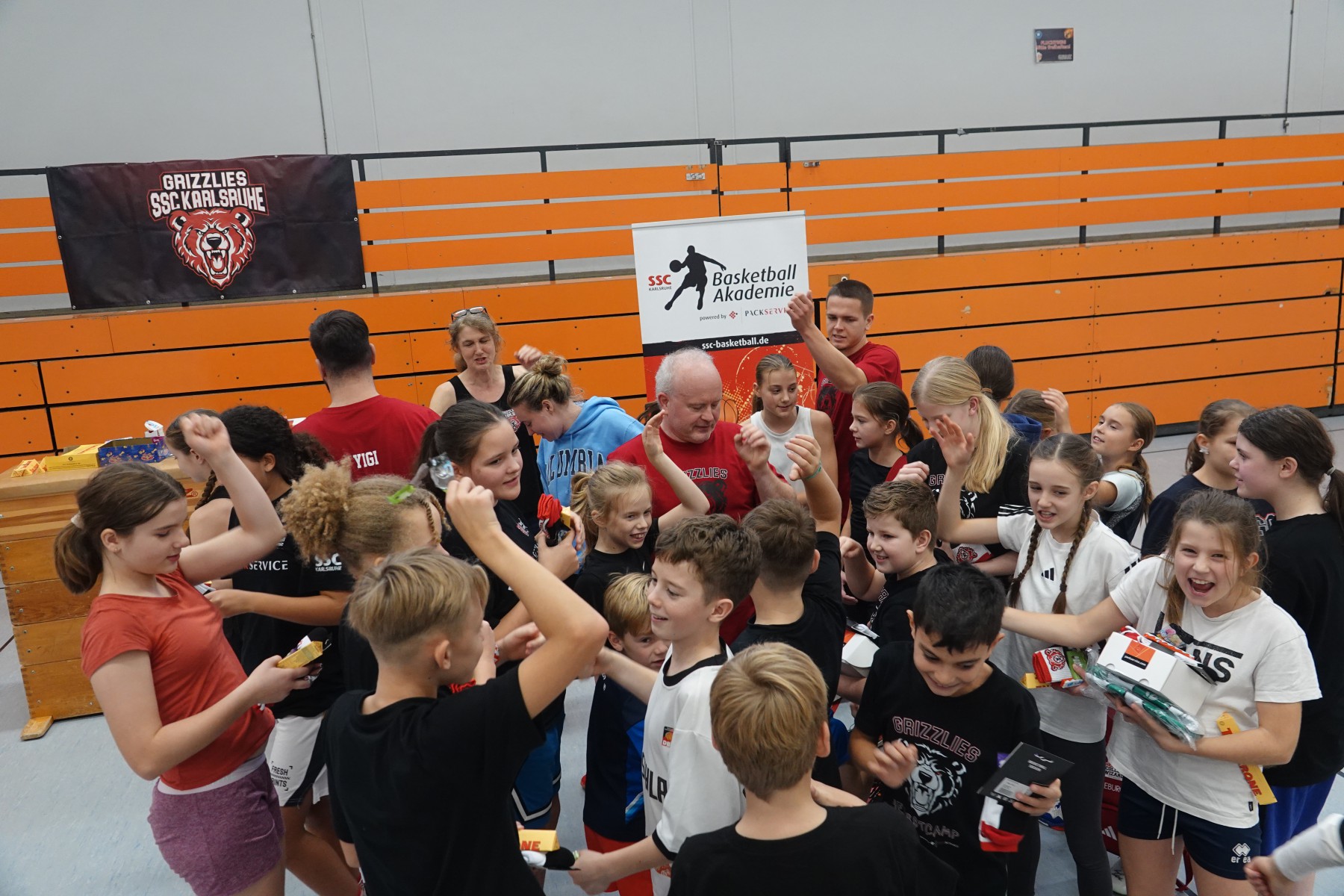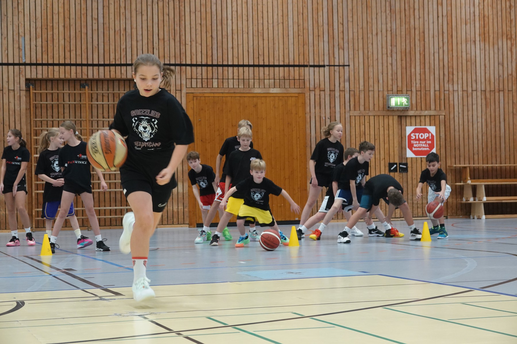 Fünf Tage Basketballcamp in den Herbstferien – das wollten sich viele basketballbegeisterte Kids nicht entgehen lassen. Und so startete das GRIZZLIES Herbstcamp 2025 powered by PACKSERVICE mit rund 30 Kindern und Jugendlichen der Jahrgänge 2011-2016 am Montag der Herbstferien. Fast alle brachten Basketballkenntnisse mit, viele der Kinder spielen in der PACKSERVICE Basketballakademie des SSC Karlsruhe oder in einem anderen Verein in der Umgebung.