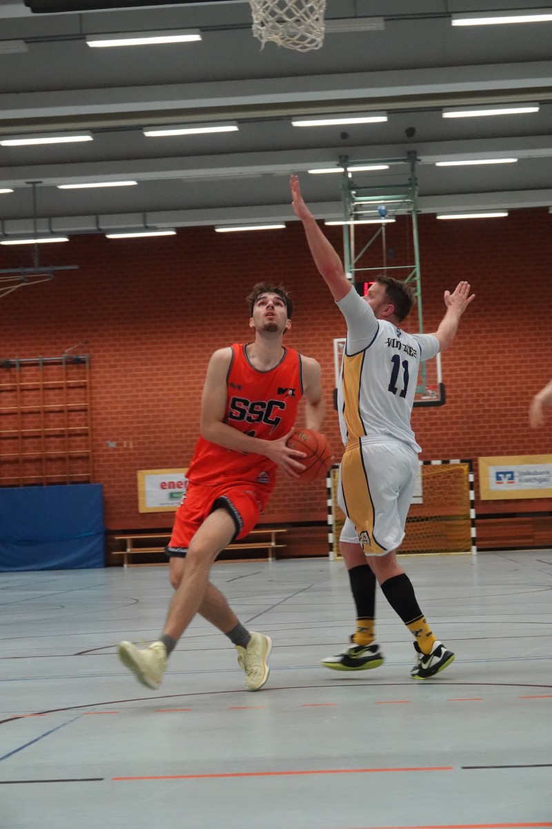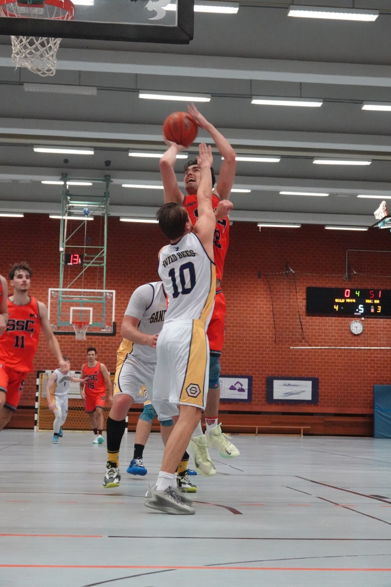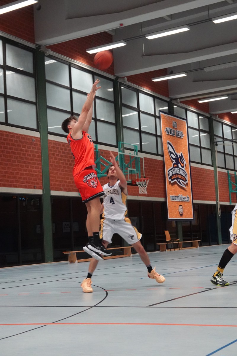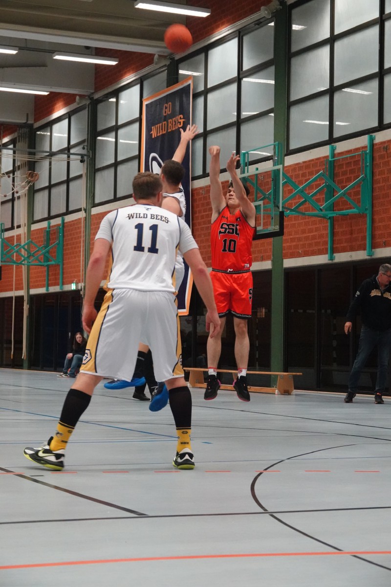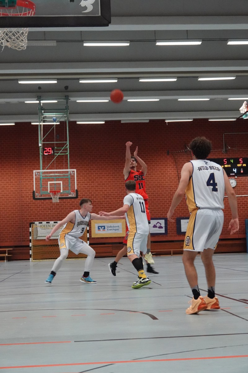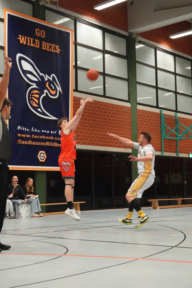 Gegen die TG Sandhausen Wild Bees lief der Ball von Anfang an gut. Doch der Abschluss hakte, mit den Sandhausener Körben kamen unsere Jungs nicht gut zurecht. Sie blieben bei der Chancenverwertung unter ihren Möglichkeiten und gaben daher die ersten beiden Viertel knapp an den Gegner, so dass es mit 30:28 für die Wild Bees in die Halbzeitpause ging.