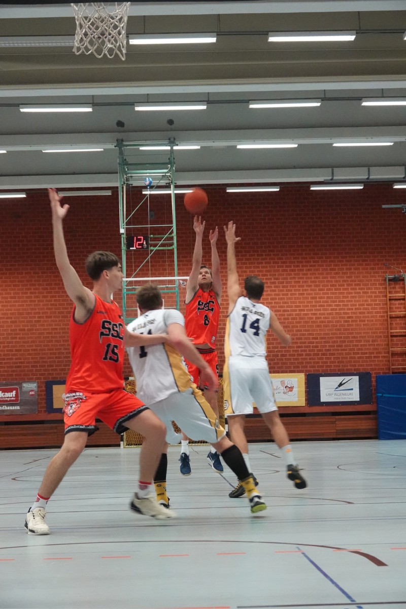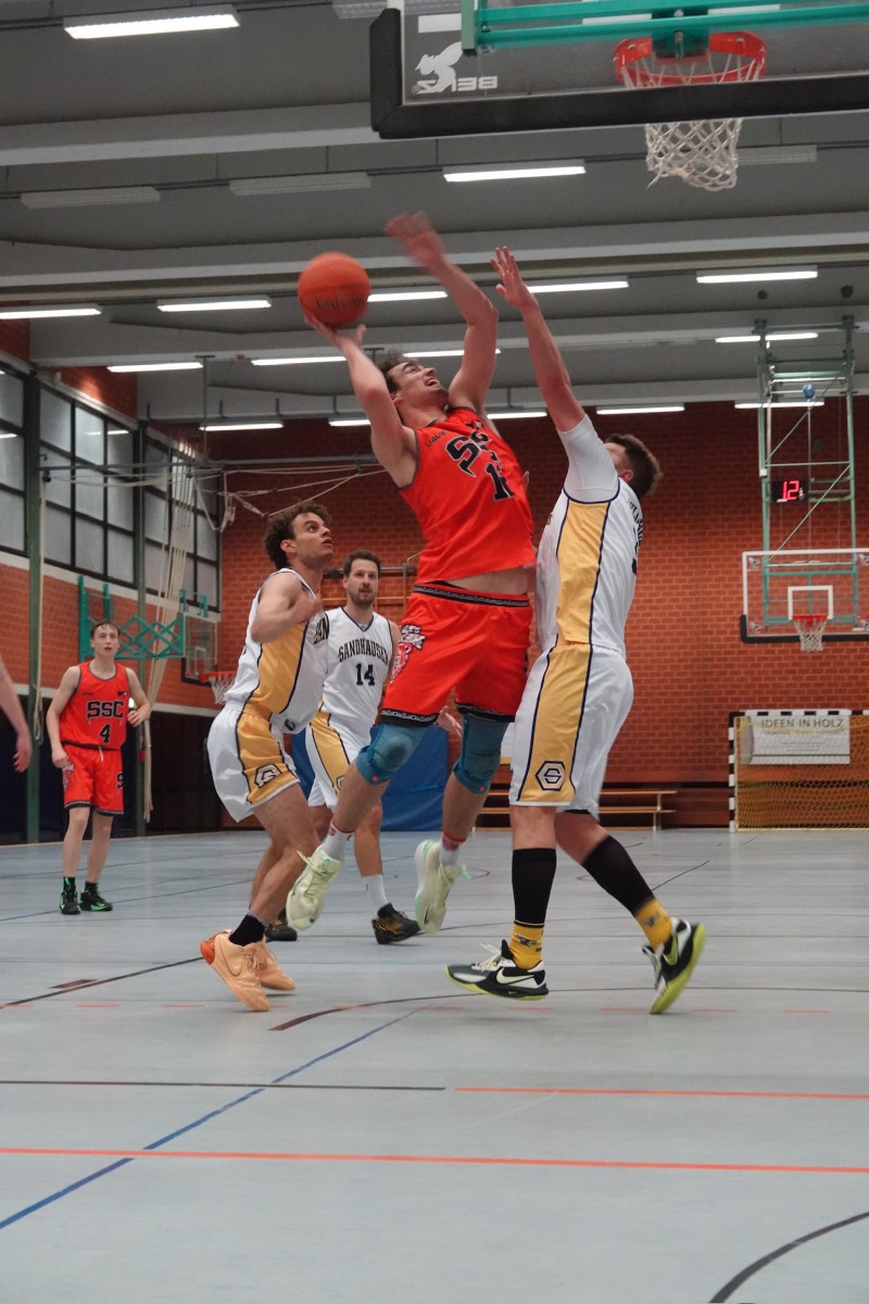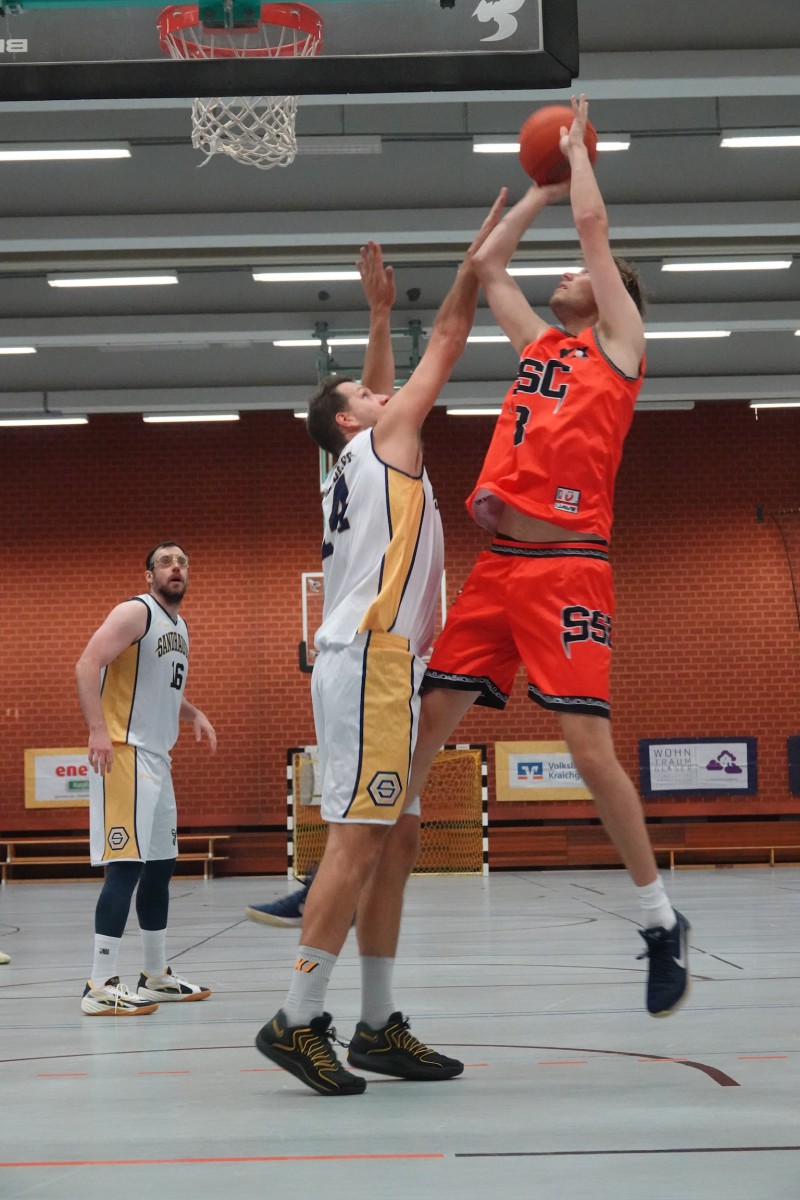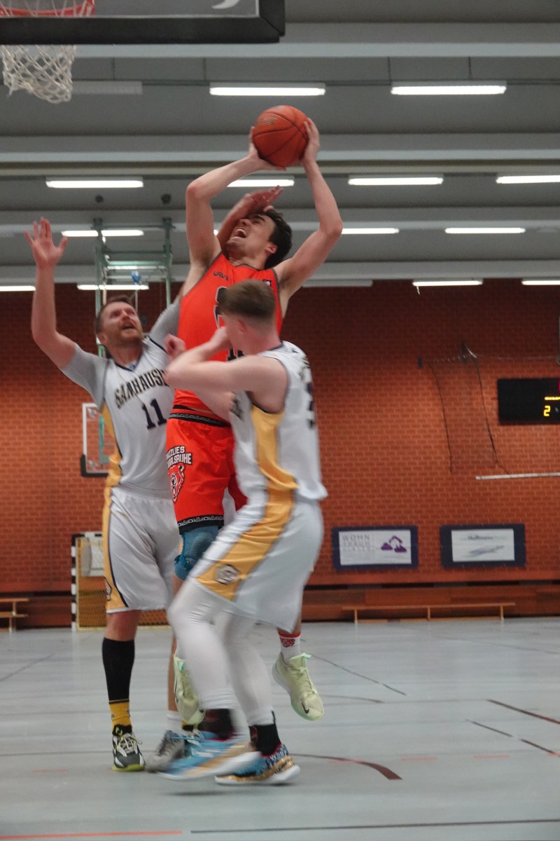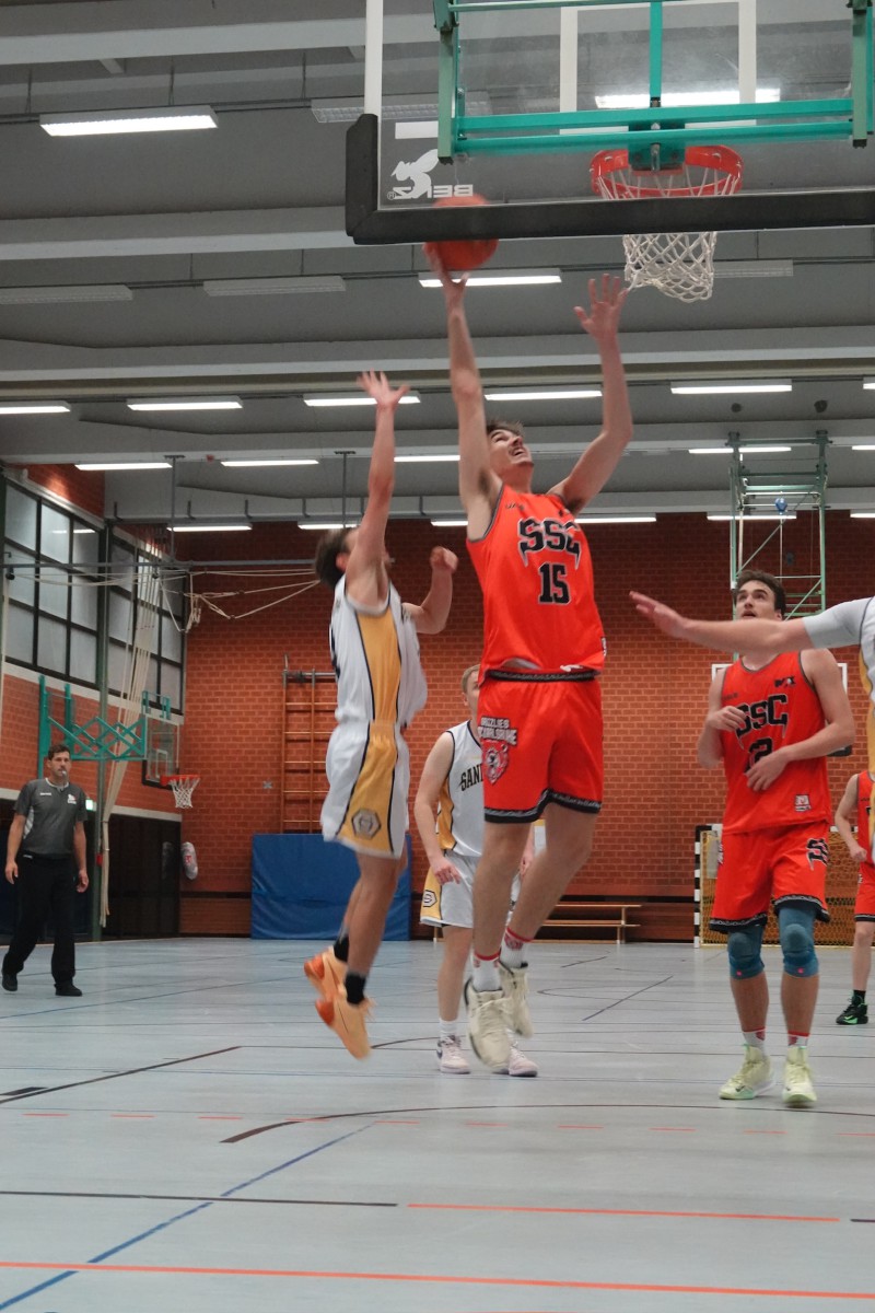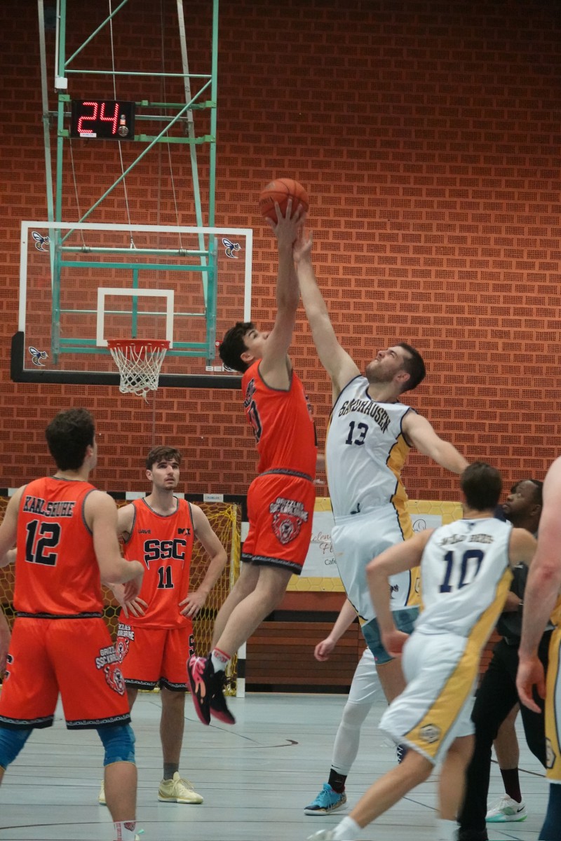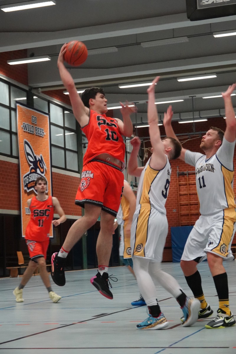 Gegen die TG Sandhausen Wild Bees lief der Ball von Anfang an gut. Doch der Abschluss hakte, mit den Sandhausener Körben kamen unsere Jungs nicht gut zurecht. Sie blieben bei der Chancenverwertung unter ihren Möglichkeiten und gaben daher die ersten beiden Viertel knapp an den Gegner, so dass es mit 30:28 für die Wild Bees in die Halbzeitpause ging.