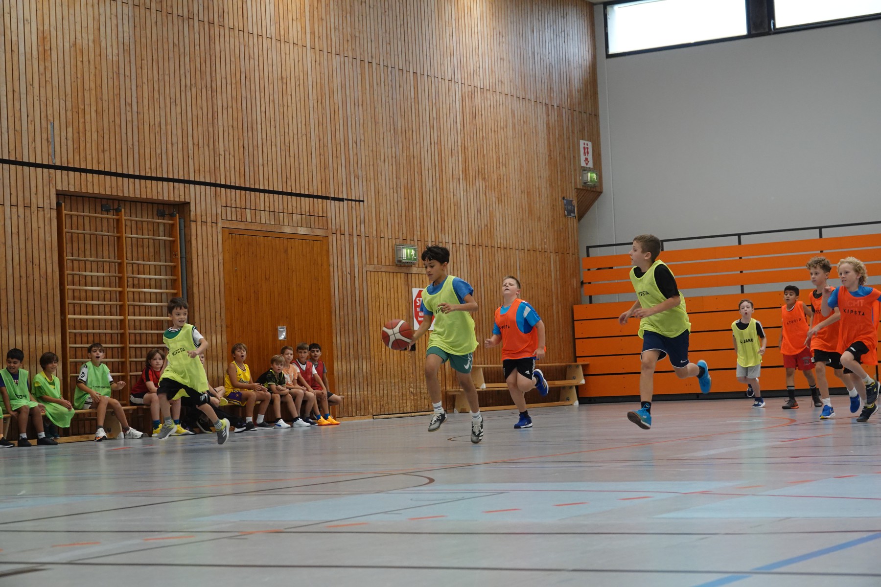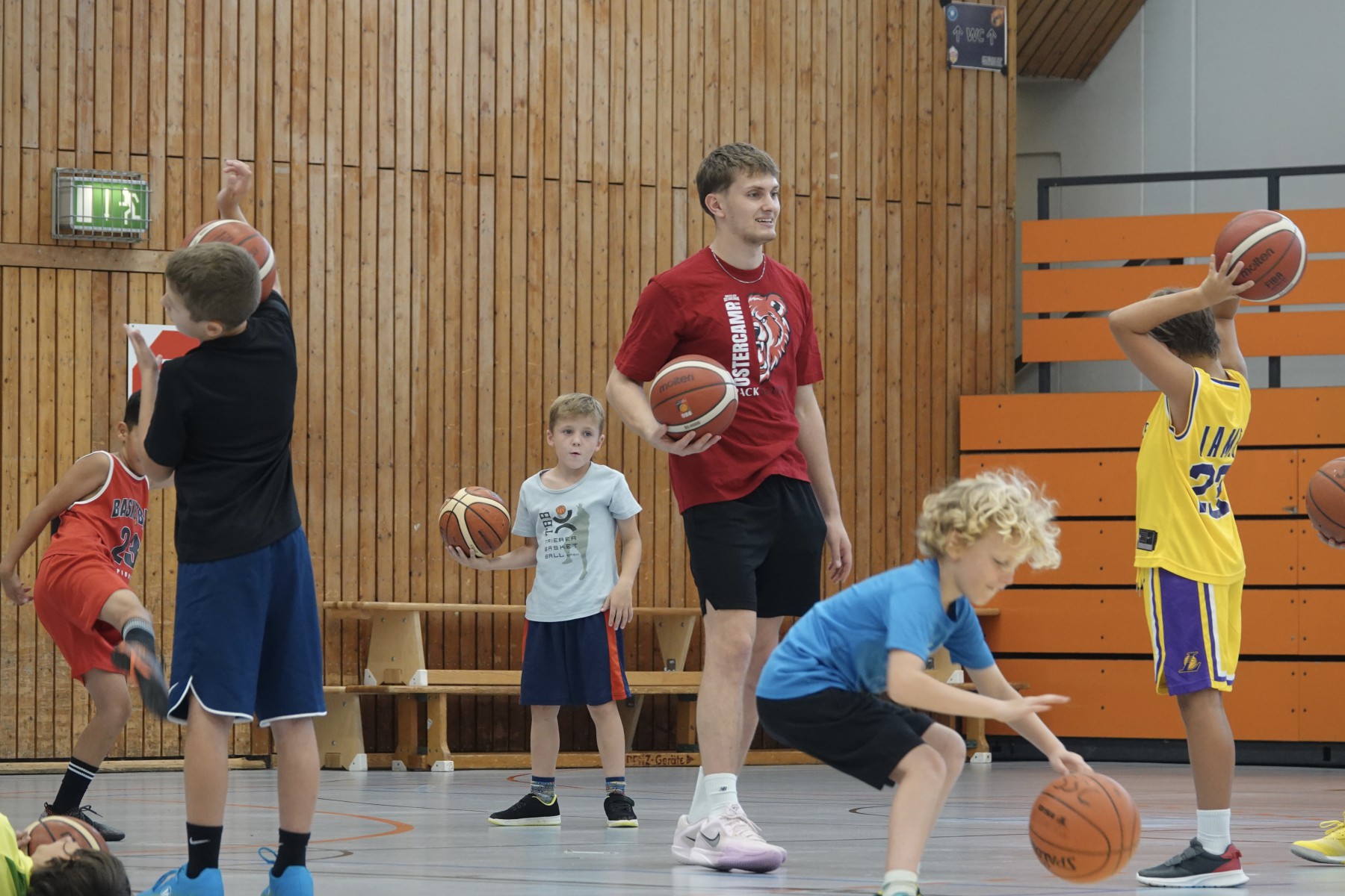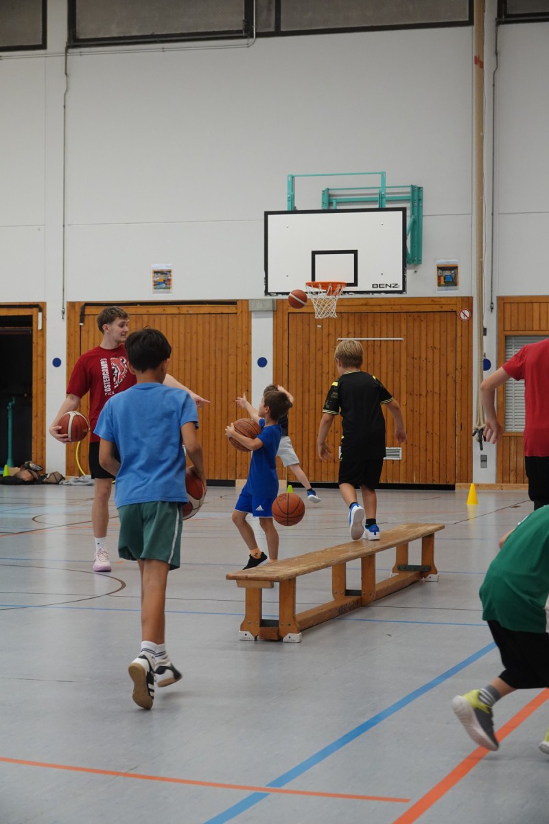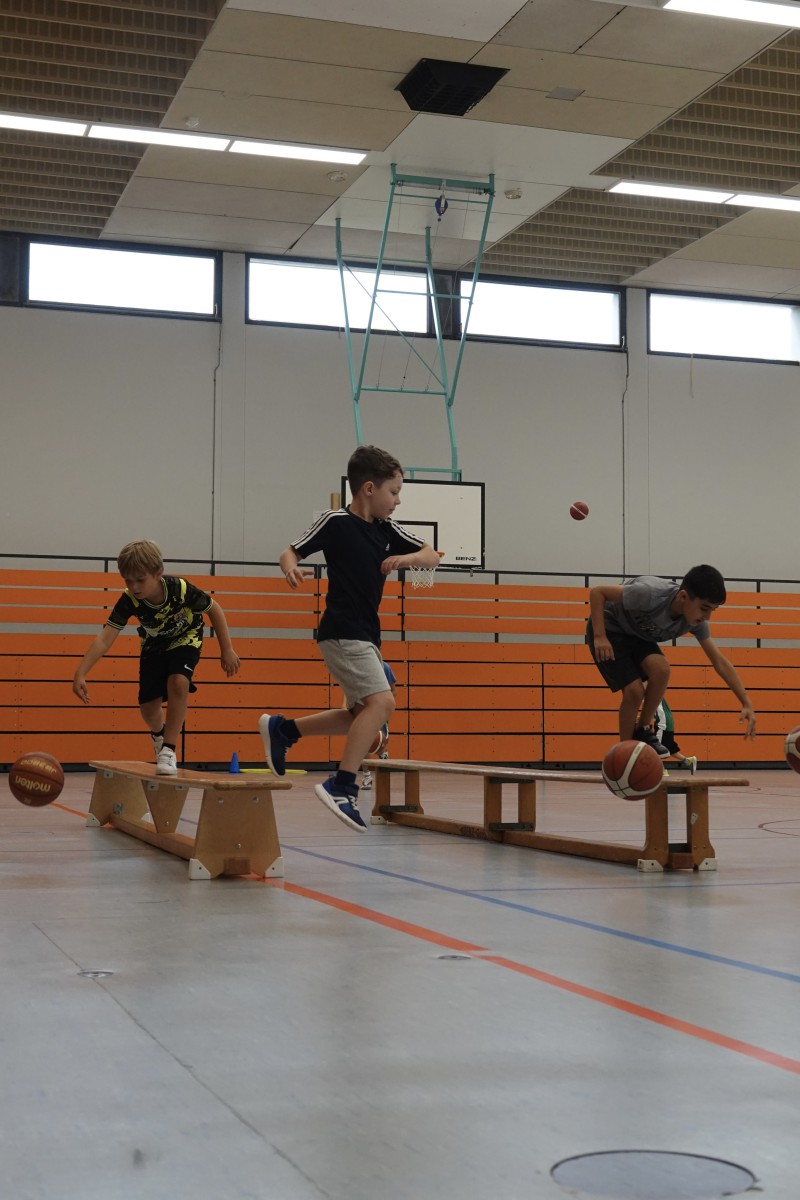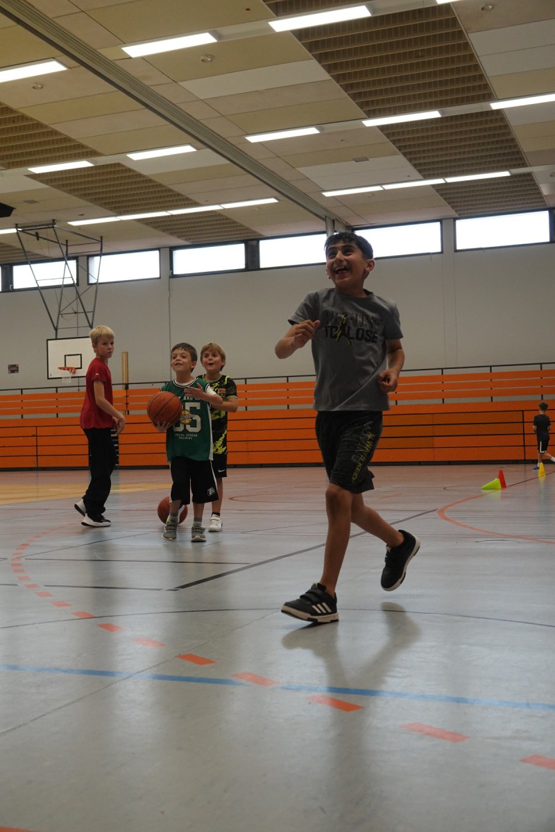 8 Mädchen und 20 Jungs nahmen die Einladung an und konnten in je drei Stunden unter der Leitung von Akademieleiter Marcus Dippel Bereiche aus dem Mini-Basketballtraining kennenlernen. Sie spielten Aufwärm- und Taktikspiele, übten sich beim Techniktraining im Dribbeln und Werfen und lernten den basketballerisch wichtigen Korbleger kennen. Und am Ende wurde auch noch richtig Basketball gespielt. Im Mini-Basketball spielen die Kinder mit kleineren Bällen und abgesenkten Körben, so dass auch die Kleineren zu Korberfolgen kommen. Diese wurden dann auch lautstark gefeiert.