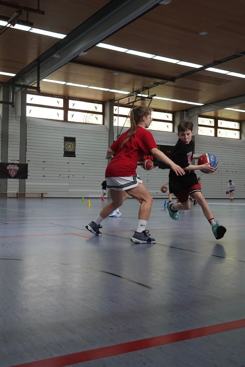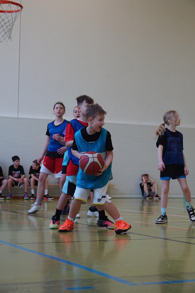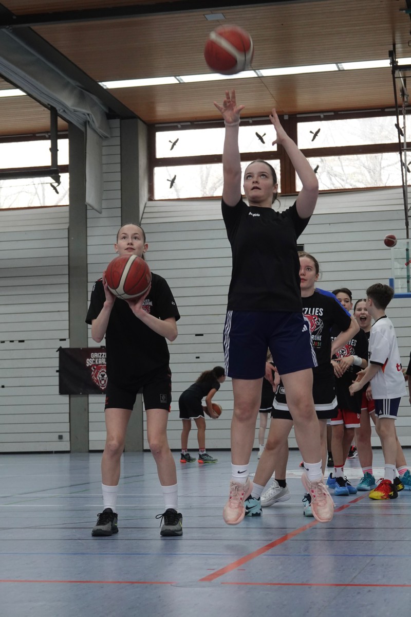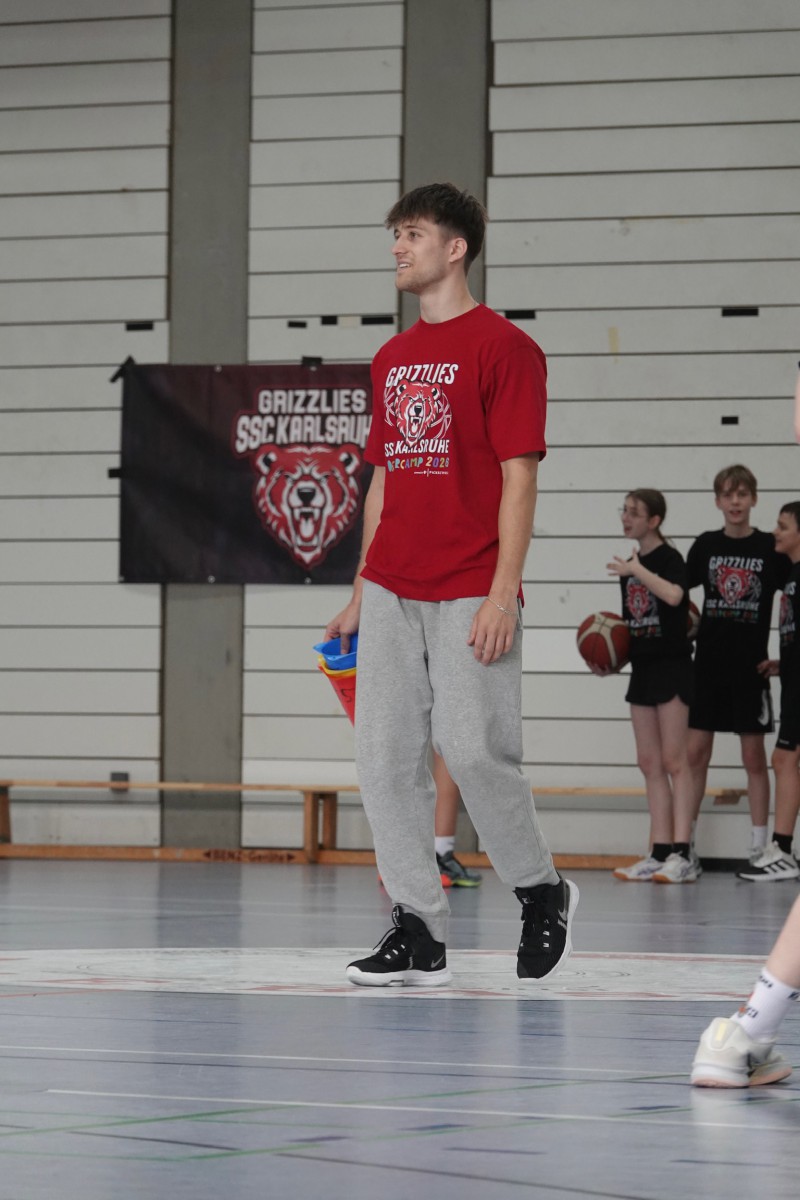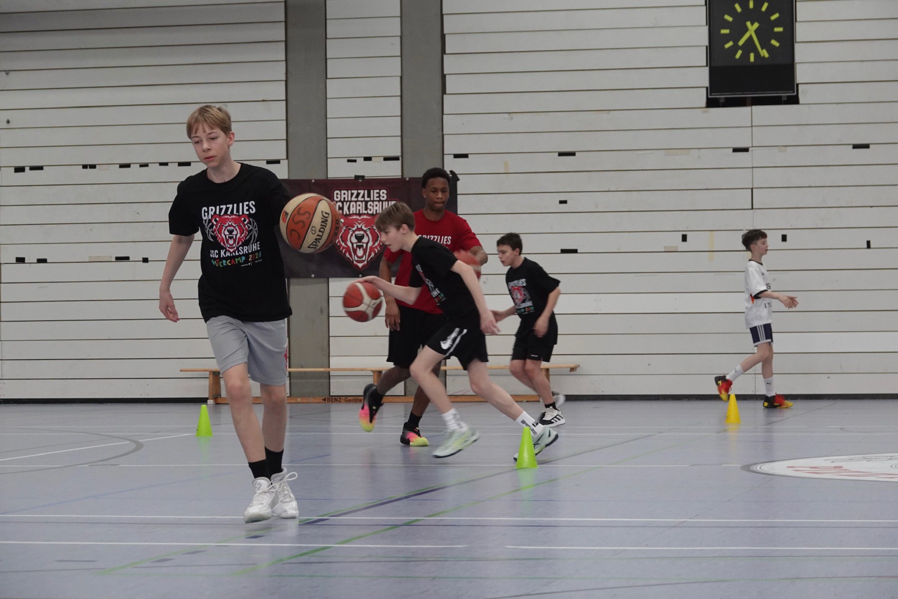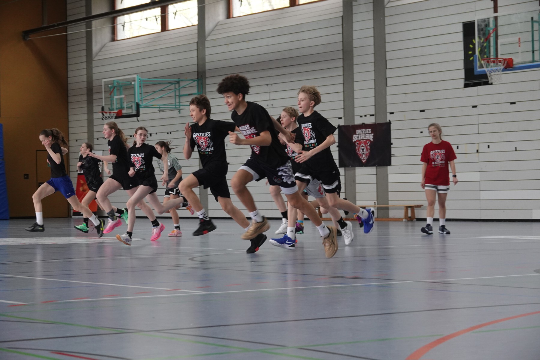 Am ersten Camp- Tag erwarteten die Trainer- und Trainerinnen voller Vorfreude die jungen Basketballer – Mädels und Jungs der Altersklassen 2012-2017. Schnell war das Check-In erledigt, die coolen GRIZZLIES-Camp-Shirts angezogen und die Eltern und Geschwister verabschiedet. Nach einer kurzen Begrüßung und dem wichtigen Gruppenfoto wechselten die Jüngeren in die Halle 2, die über absenkbare Körbe verfügt. So können die Kinder der Altersklassen U10 und U12 dort altersgerecht trainieren. Unter der Anleitung von Akademieleiter Marcus Dippel und seinem Trainerteam standen wieder viele abwechslungsreiche Übungen zur Förderung der individuellen Fähigkeiten auf dem Programm, um so Sicherheit im Umgang mit dem Ball zu gewinnen. Daneben gab es kleine Wettbewerbe und Spiele, bei denen es wie immer tolle Preise zu gewinnen gab.