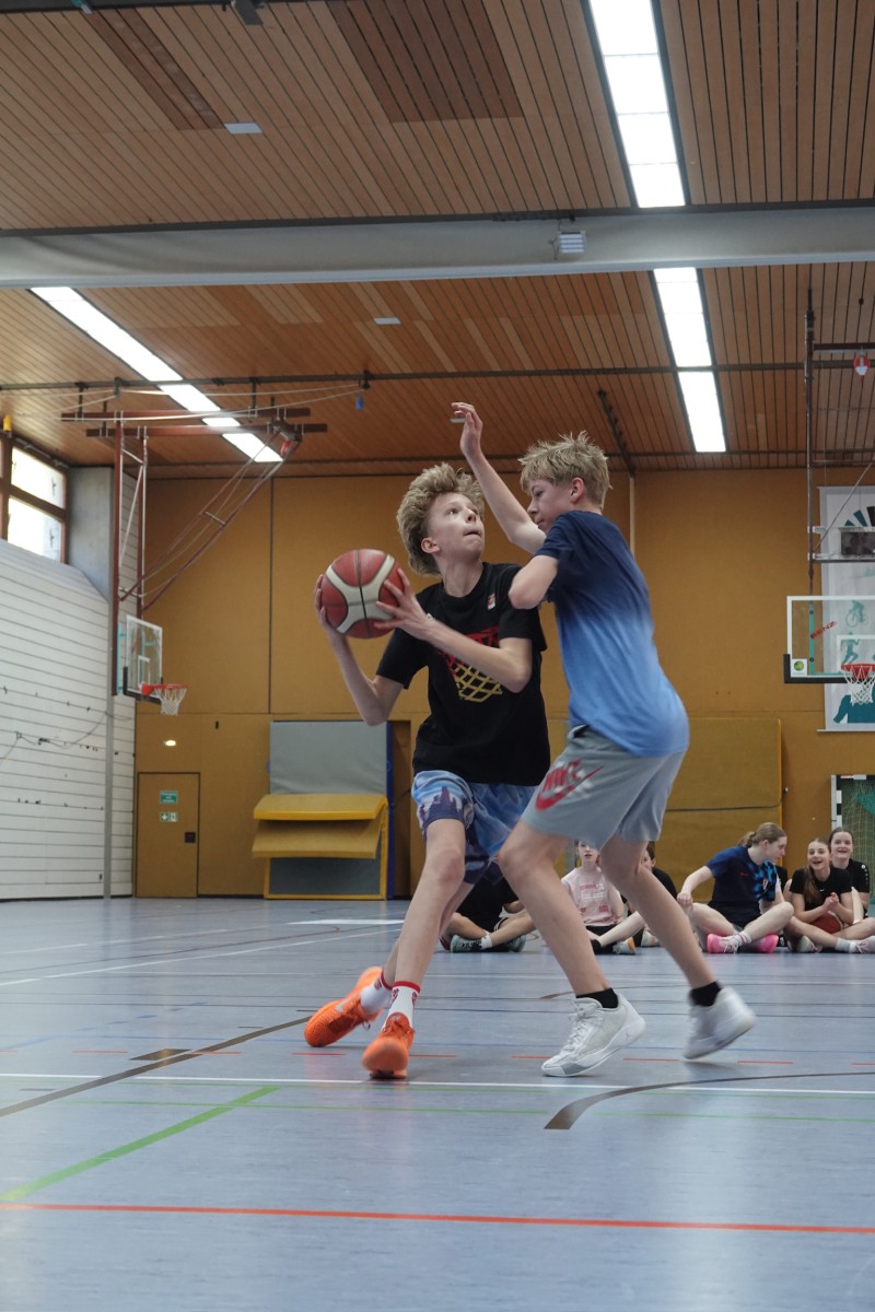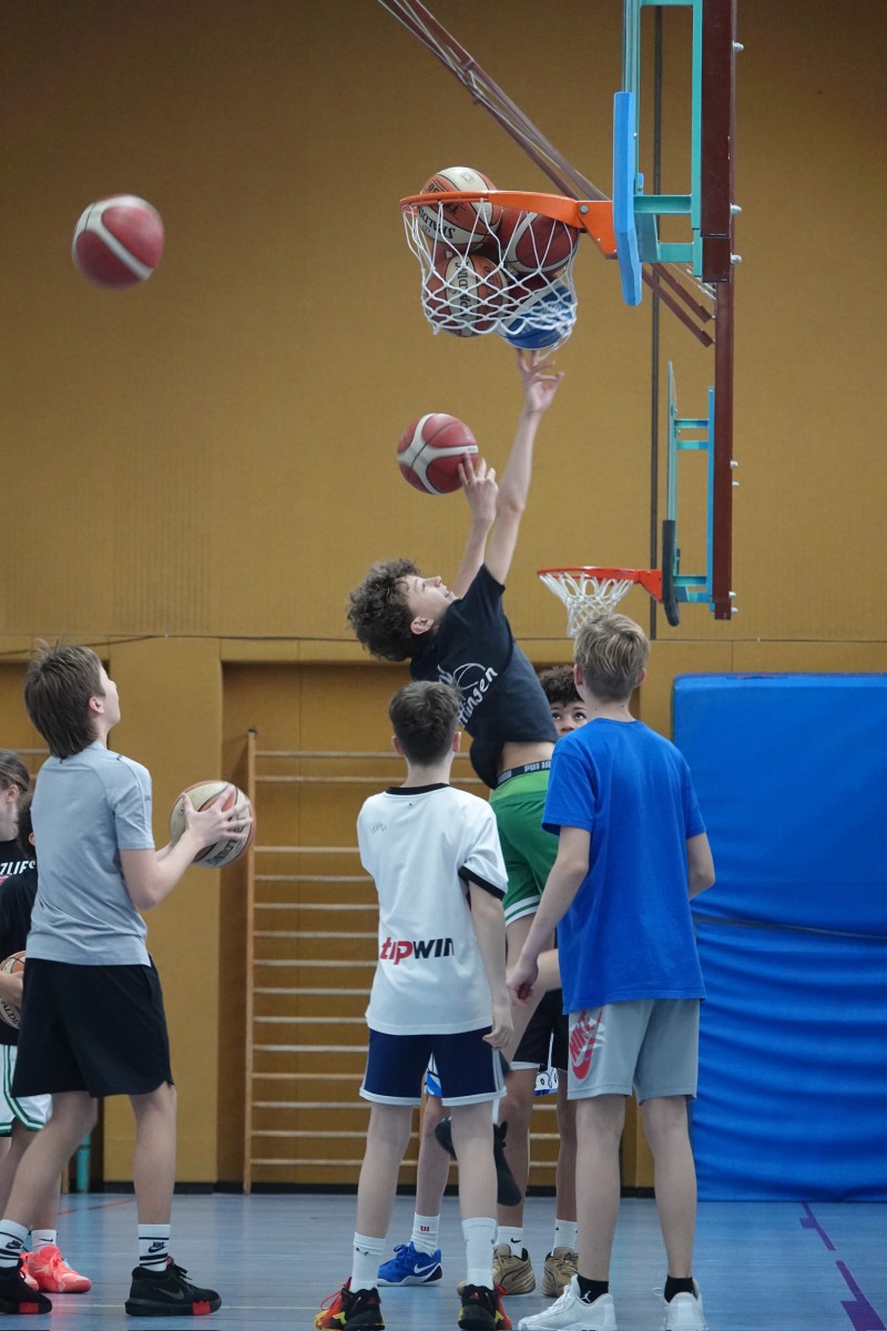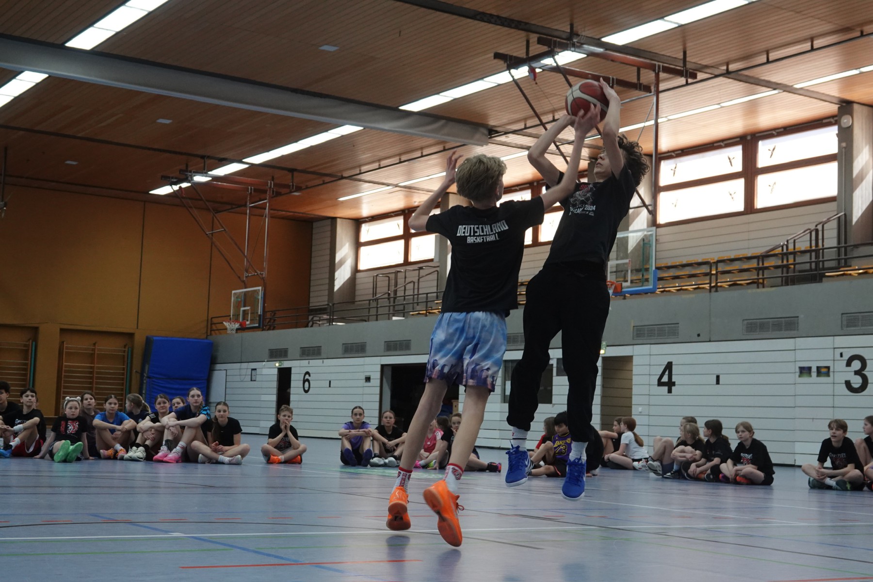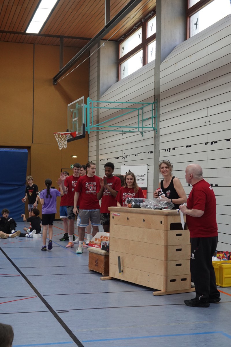 Am Donnerstag gab es noch für alle eine kleine Preisverleihung. Besondere Leistungen und Entwicklungen und die Sieger:innen der Wettbewerbe wurden prämiert und jeder konnte sich einen kleinen Preis und etwas Süßes abholen. Danach verabschiedeten sich alle noch ein letztes Mal in einem Huddle. Dann war auch diese erlebnisreiche Basketball-Woche schon wieder zu Ende. Macht’s gut! Bis bald in der Halle – beim Training, beim Spiel oder beim nächsten Basketball-Camp!