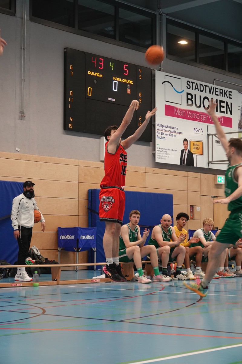 Die Grizzlies fanden gut ins Spiel und gingen rasch in Führung. Die Buchener wussten um unsere Stärke unter dem Korb und machten die Zone dicht. Das gab unseren Jungs Raum zum Werfen und so wurde es ein Spiel frei nach dem Motto „Leben und Sterben an der Dreierlinie“…. Es war schnell klar, wenn wir von außen nicht treffen, wird es schwer zu gewinnen.