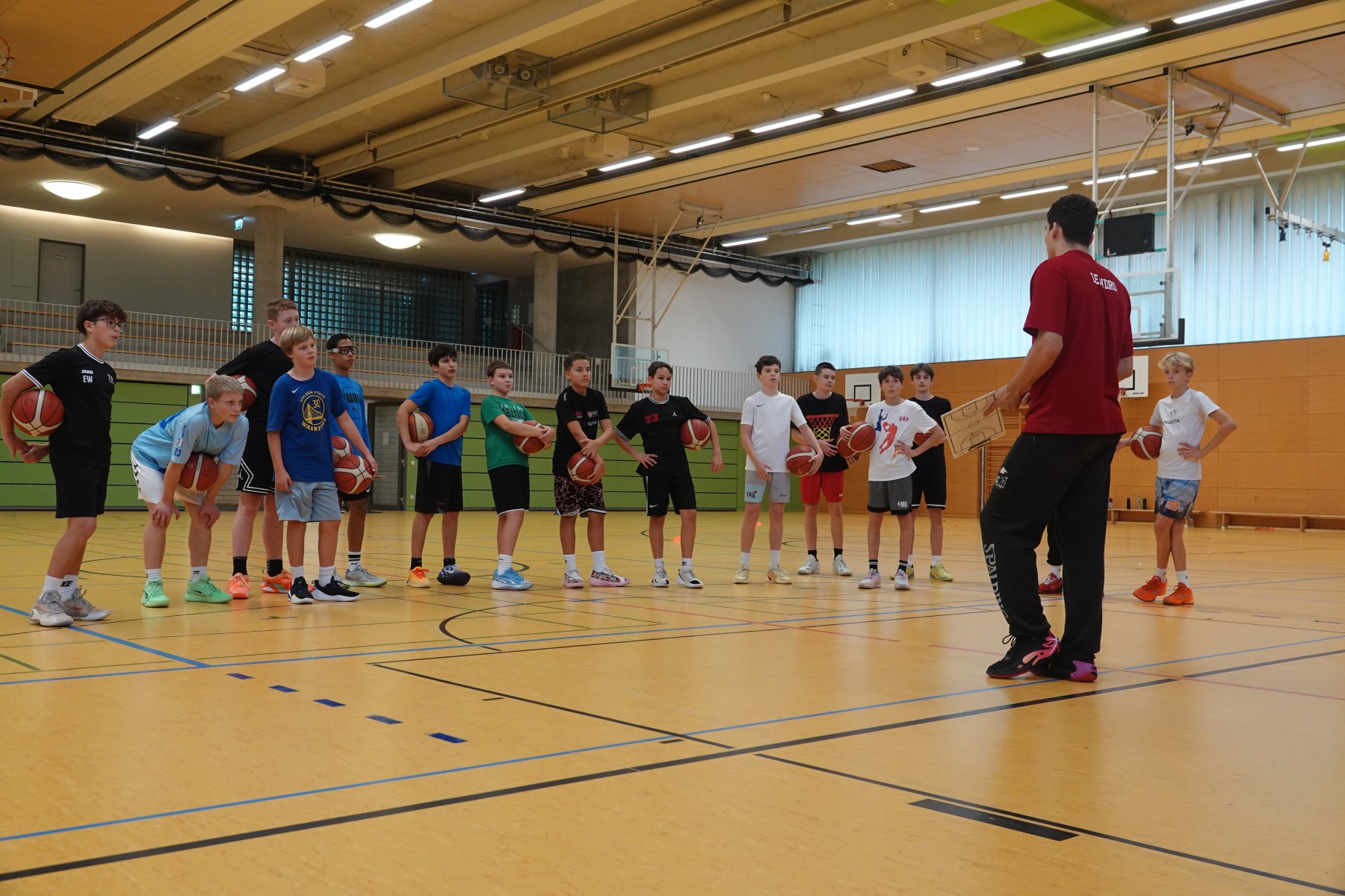 Unter der Leitung von Leistungssport C-Trainer Leandro Alonso Krawinkel arbeiteten 15 Jungs drei Tage und vier Jungs zwei Tage lang hart an ihren Fertigkeiten. Ob Shooting oder Ball Handling, Driving & Finishing oder Decision Making – jeder Tag hatte seinen eigenen Schwerpunkt, an dem gründlich gefeilt wurde. Alle legten sich mächtig ins Zeug und gaben ihr Bestes. Dadurch, dass das Camp auf die einzelnen Skills fokussiert war, konnte jeder an seinem Level arbeiten und sich individuell verbessern.