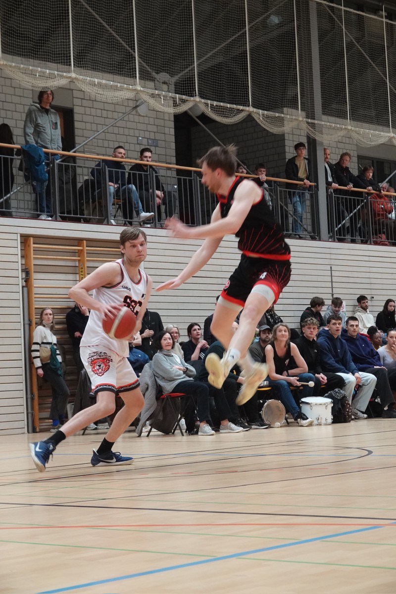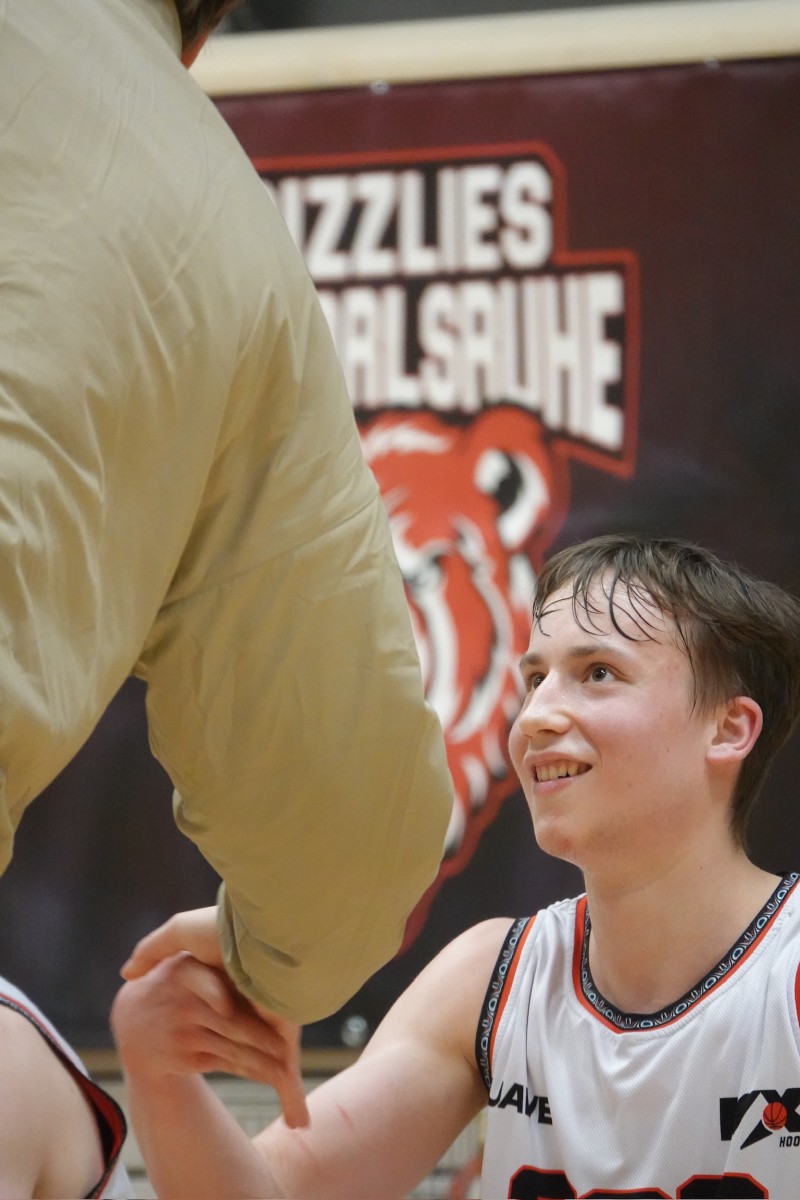 Der MVP des Spiels aber war Johannes, der gegen Eichenkreuz sein bislang bestes Spiel machte. Als Point Guard war er spielbestimmend im Angriff, in der Defense hartnäckig und aufmerksam und das über fast 38 Minuten lang. Das Team ließ ihn nach dem Spiel hochleben und feierte gemeinsam den verdienten Sieg!