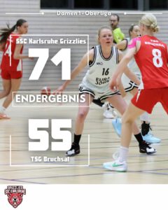 — Oberliga: Grizzlies gegen TSG Bruchsal am 10.01.26 — Unsere Damen 1 bleiben in der Oberliga Baden Frauen weiter auf Erfolgskurs. Am Samstagabend daheim in der Wildparkhalle spielten sie zwar nicht ihr volles Potential aus, holten sich aber dennoch einen klaren 71:55-Sieg gegen den Tabellenersten Bruchsal. Von Beginn an gingen ...