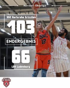 — Oberliga: Grizzlies gegen LSV Ladenburg am 24.01.26 — Mit einem klaren 103:66-Sieg gegen den LSV Ladenburg festigen die Grizzlies ihren fünften Tabellenplatz und sind nun punktgleich mit dem Dritten und zwei Siege hinter dem ersten Platz. Gegen Ladenburg hatten die Grizzlies in der Hinrunde ersatzgeschwächt eine bittere Niederlage eingefahren ...