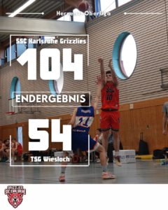 — Oberliga: Grizzlies gegen TSG Wiesloch am 08.03.26 — In einem mitreißenden Spiel auswärts gegen die TSG Wiesloch zeigten die Grizzlies in der Oberliga Baden Männer eine beeindruckende Leistung. Mit 15 verwandelten Dreipunktwürfen und einem maximalen Punkteabstand von 52 Punkten überrollten sie die Wieslocher und holten sich einen verdienten 104:54-Sieg ...